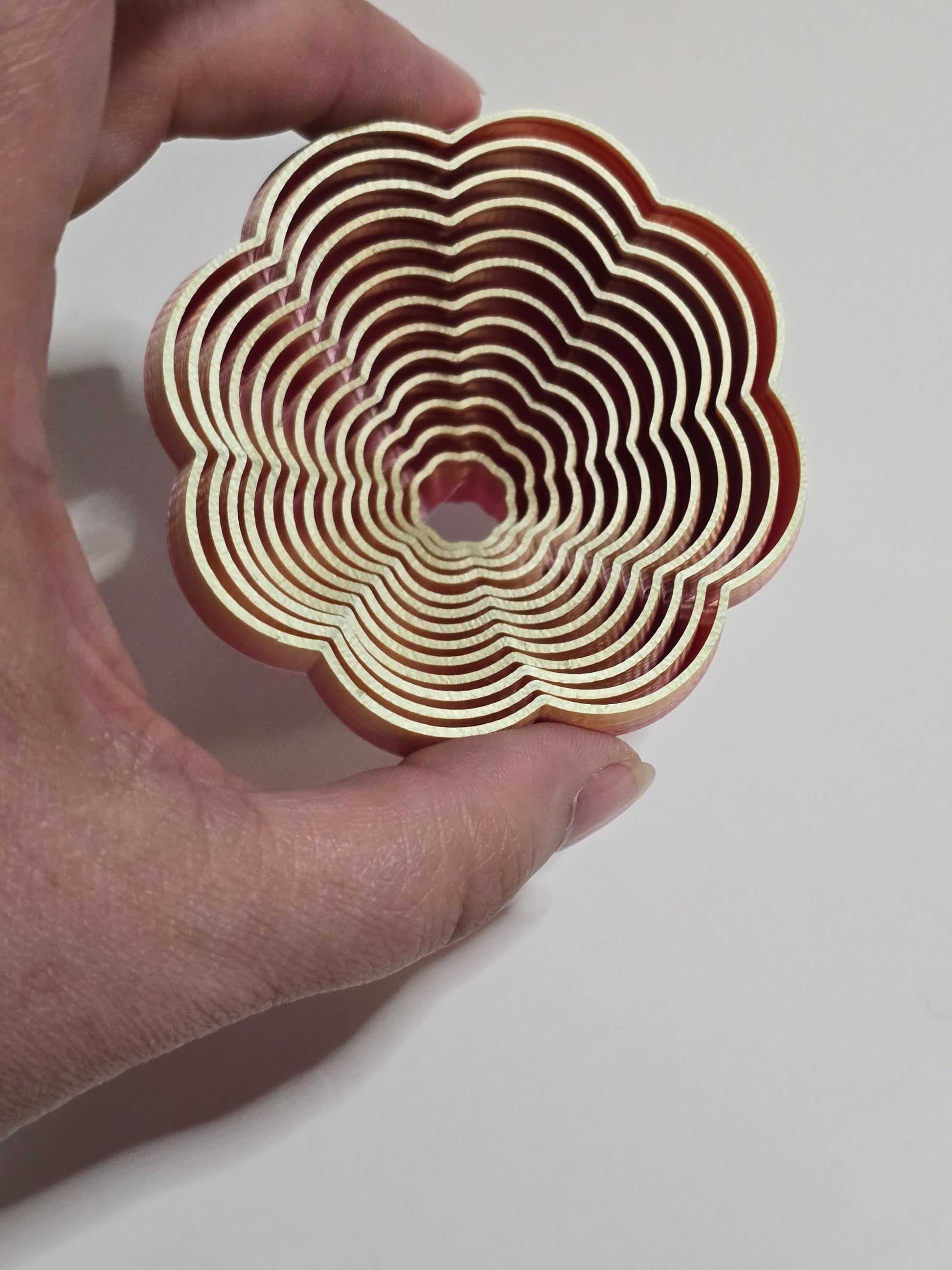 This colorful flower fidget is a great way to relieve stress and anxiety. 3D printed with durable PLA materials, it offers a satisfying tactile experience. The multiple layers of hexagons create a unique and visually appealing design and a satisfying RMS sound.