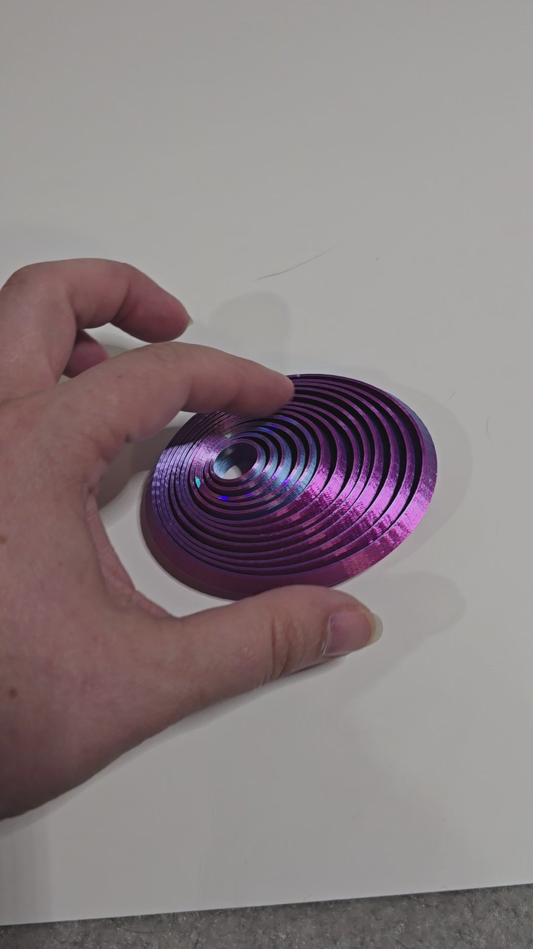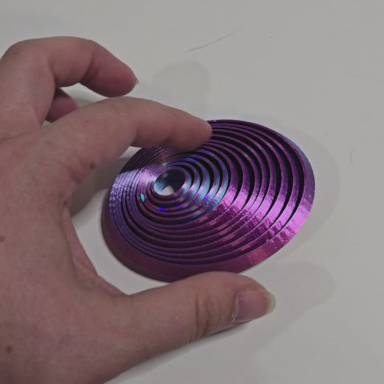 This colorful oval fidget is a great way to relieve stress and anxiety. 3D printed with durable PLA materials, it offers a satisfying tactile experience. The multiple layers of hexagons create a unique and visually appealing design and a satisfying ASMR sound.