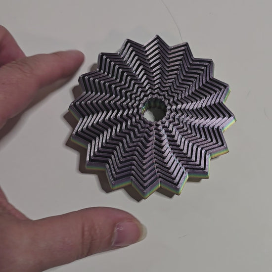 This colorful tornado fidget is a great way to relieve stress and anxiety. 3D printed with durable PLA materials, it offers a satisfying tactile experience. The multiple layers of hexagons create a unique and visually appealing design and a satisfying ASMR sound.